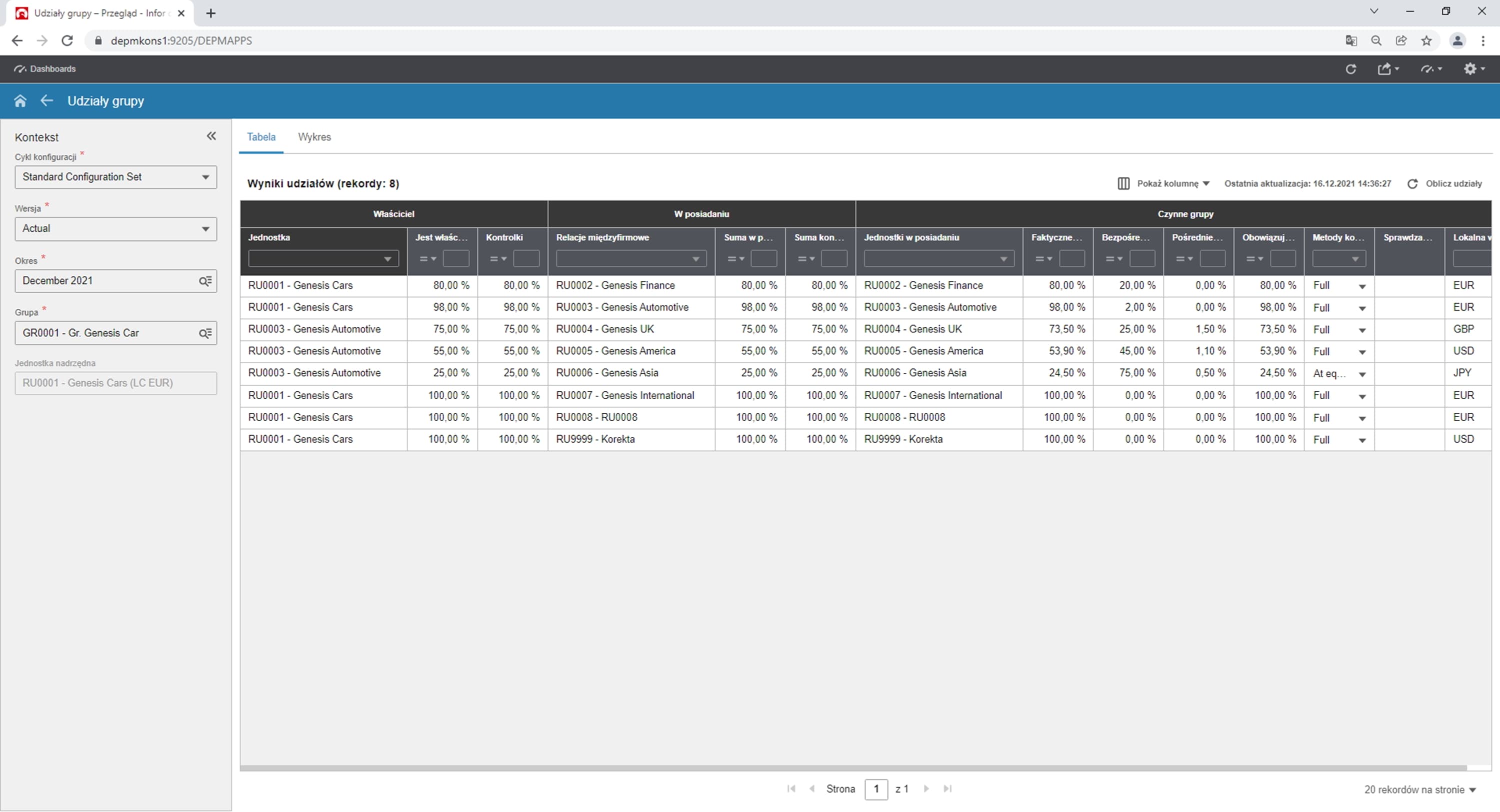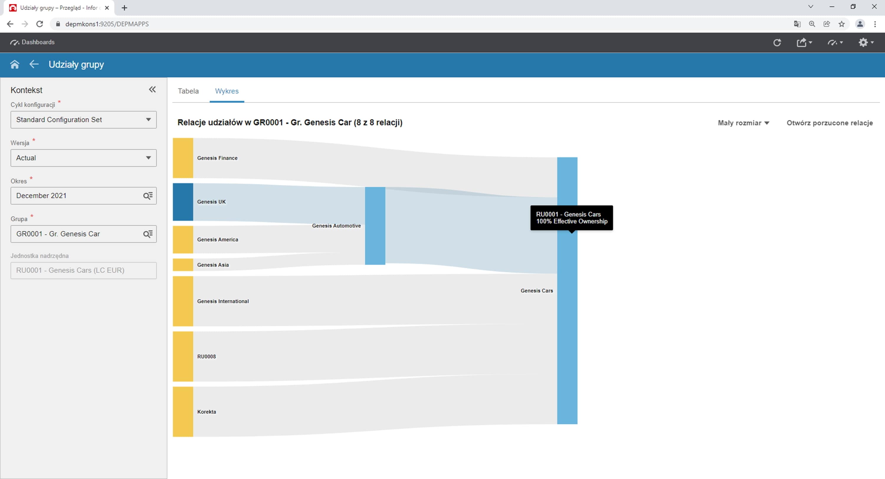 Przedstawiona struktura grupy jest utrzymywana w ramach roku, miesiąca i konkretnego scenariusza. Oznacza to, że możemy mieć różne grupy w różnych scenariuszach, dzięki czemu możliwe jest równoległe przeprowadzanie konsolidacji wg PSR-ów, MSSF-ów, UK GAAP i różnych innych standardów rachunkowości. Dodatkowo, można modelować zarządczo, jak będzie wyglądała nasza grupa. Oprócz tego, że można zbudować taką grupę, to system umożliwia tworzenie wielu różnych równoległych grup kapitałowych i utrzymywanie ich w ramach jednego systemu do konsolidacji.