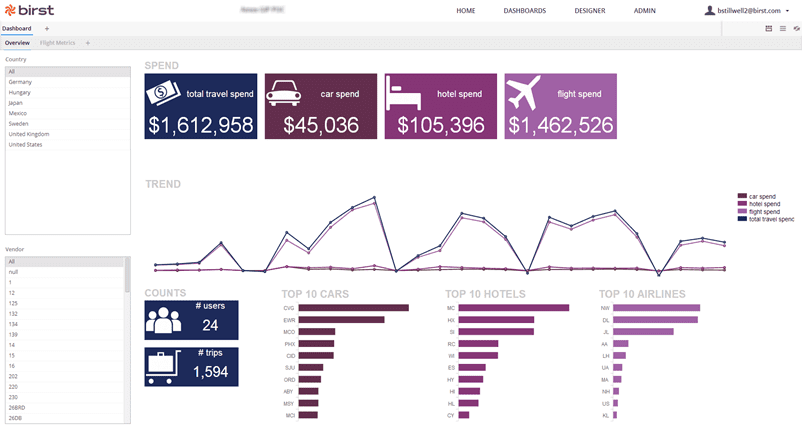 Infor Birst BI – przykład analizy podróży służbowych
