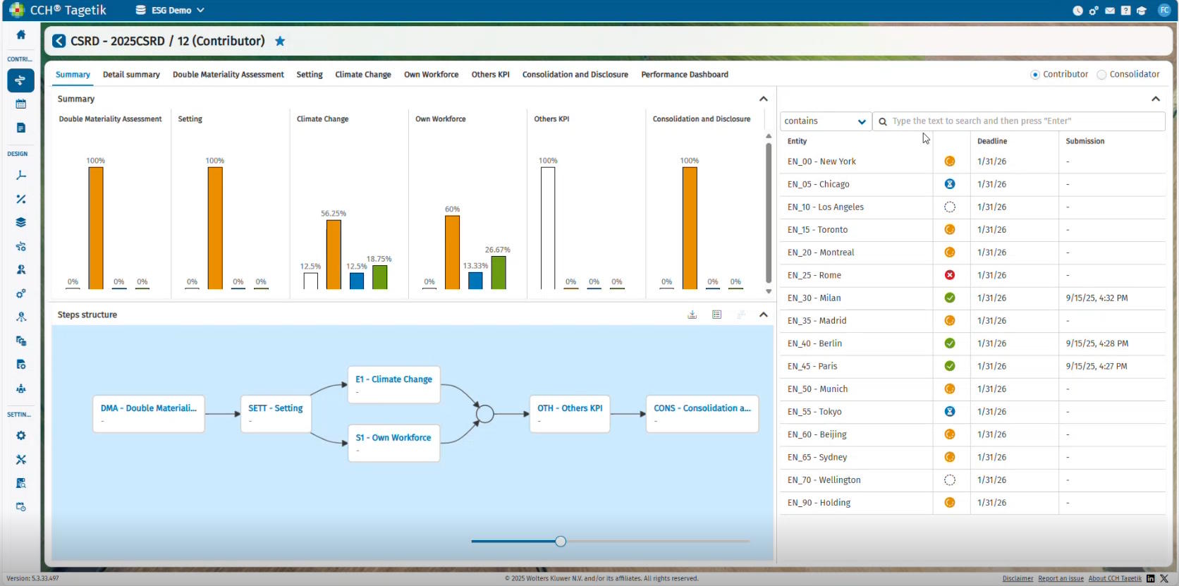 Wychodząc naprzeciw wymaganiom regulacyjnym, takim jak Dyrektywa CSRD, standardy ESRS czy polskie przepisy o rachunkowości oraz wobec rosnących oczekiwań interesariuszy w zakresie raportowania ESG oferujemy naszym Klientom kompleksowe wsparcie podczas całego procesu wdrażania zrównoważonego rozwoju aż po wygenerowanie gotowego raportu. Zapewniamy, że dzięki naszemu wsparciu merytorycznemu, szkoleniom i oferowanemu rozwiązaniu informatycznemu nasi Klienci będą mogli spełnić wymagania prawne oraz sprostać oczekiwaniom swoich inwestorów.