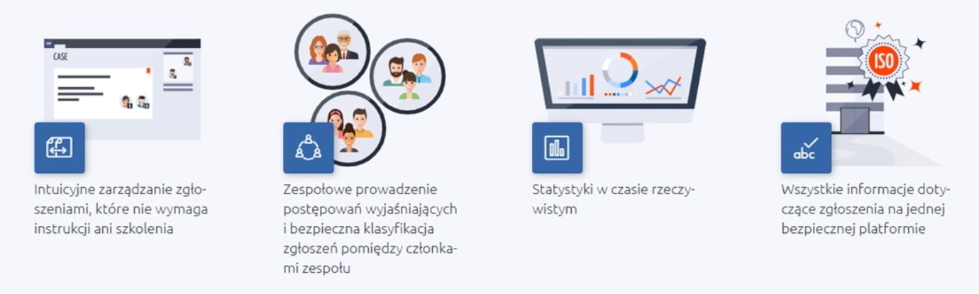 - Zgodność z regulacjami: Aplikacja jest zgodna z regulacjami dotyczącymi zgłaszania incydentów, w tym Dyrektywą Unii Europejskiej o ochronie osób zgłaszających naruszenia oraz polską ustawą wdrażającą przepisy UE, oraz ze standardami RODO, co pozwala organizacjom spełniać wymogi obowiązujących przepisów.